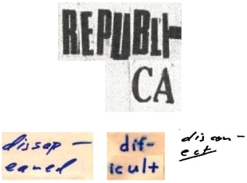 On the envelope are the postage stamp (Castello di Serravalle, 1980), the recipient’s name and address. There are four lines made up of clippings of capital letters from a weekly. Here is the text: