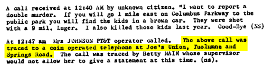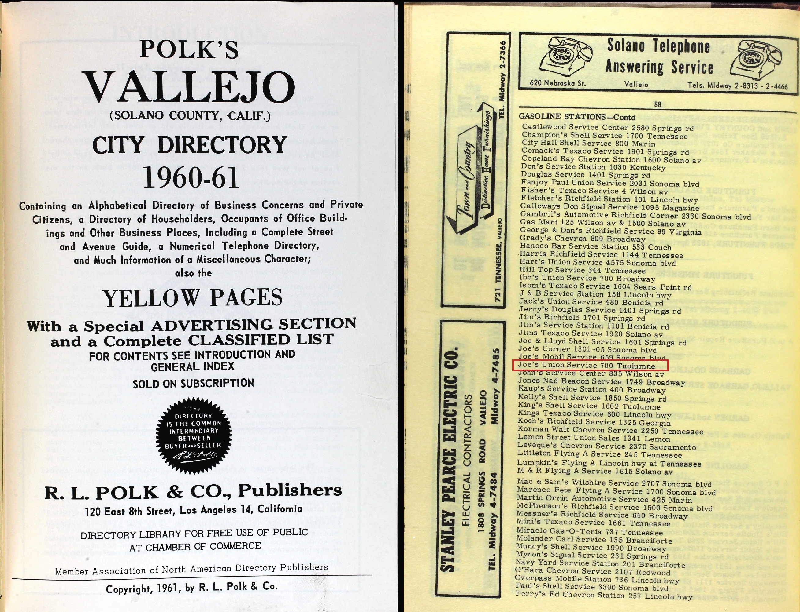 - Il nome compare come “Joe” nel rapporto investigativo cosรฌ come sul Polk’s City Directory, Vallejo, 1960-1961, R.L. Polk & Co. Publishers, ma non in quello del 1968-1969. โฉ๏ธ