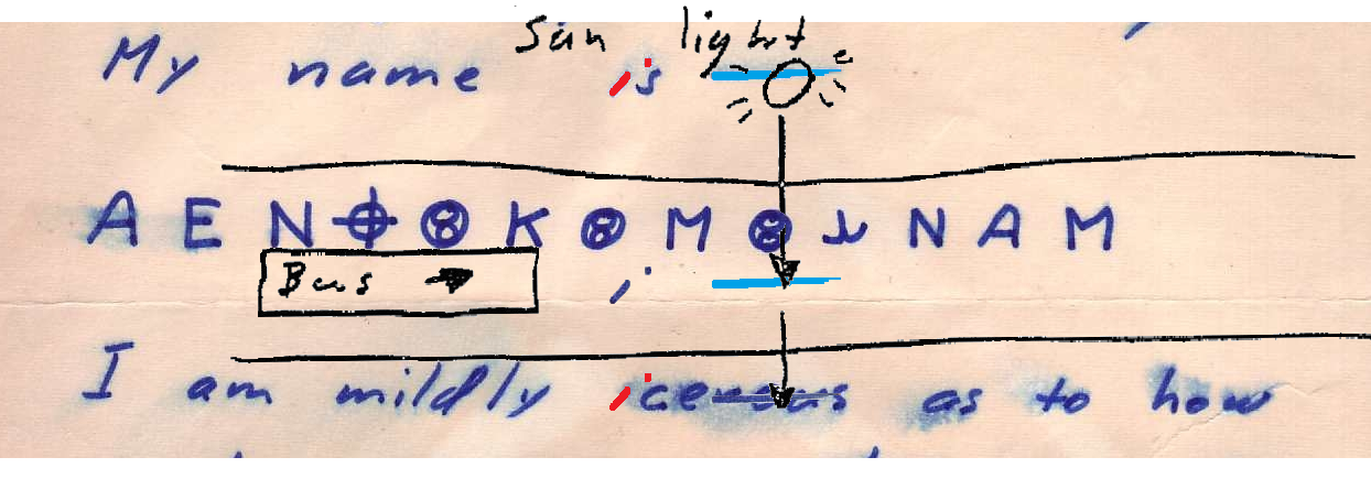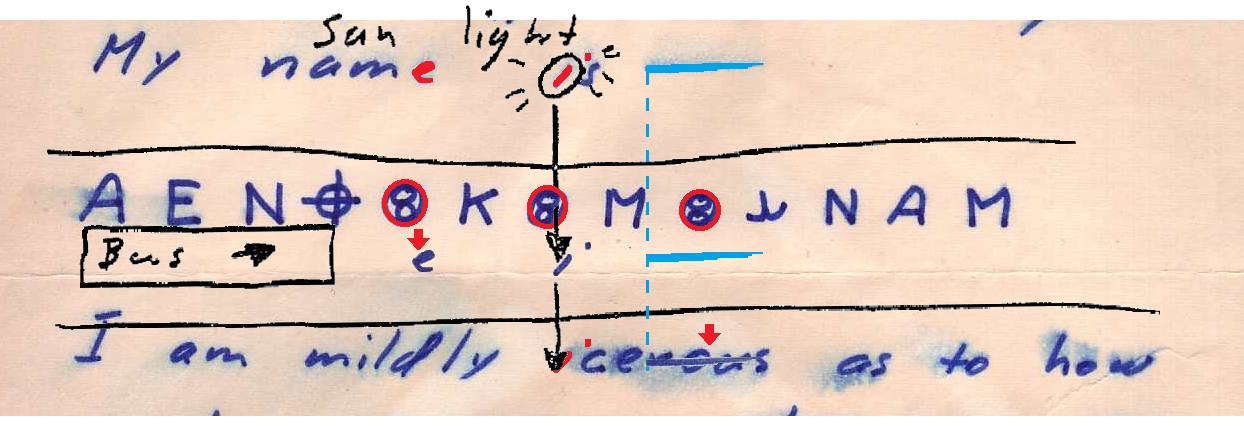 Per facilitare la comprensione della soluzione ho utilizzato una riproduzione della cartolina del film di David Fincher “Zodiac”, non le fotocopie in bianco e nero dell’FBI, comunque disponibili nel post dedicato alla soluzione.