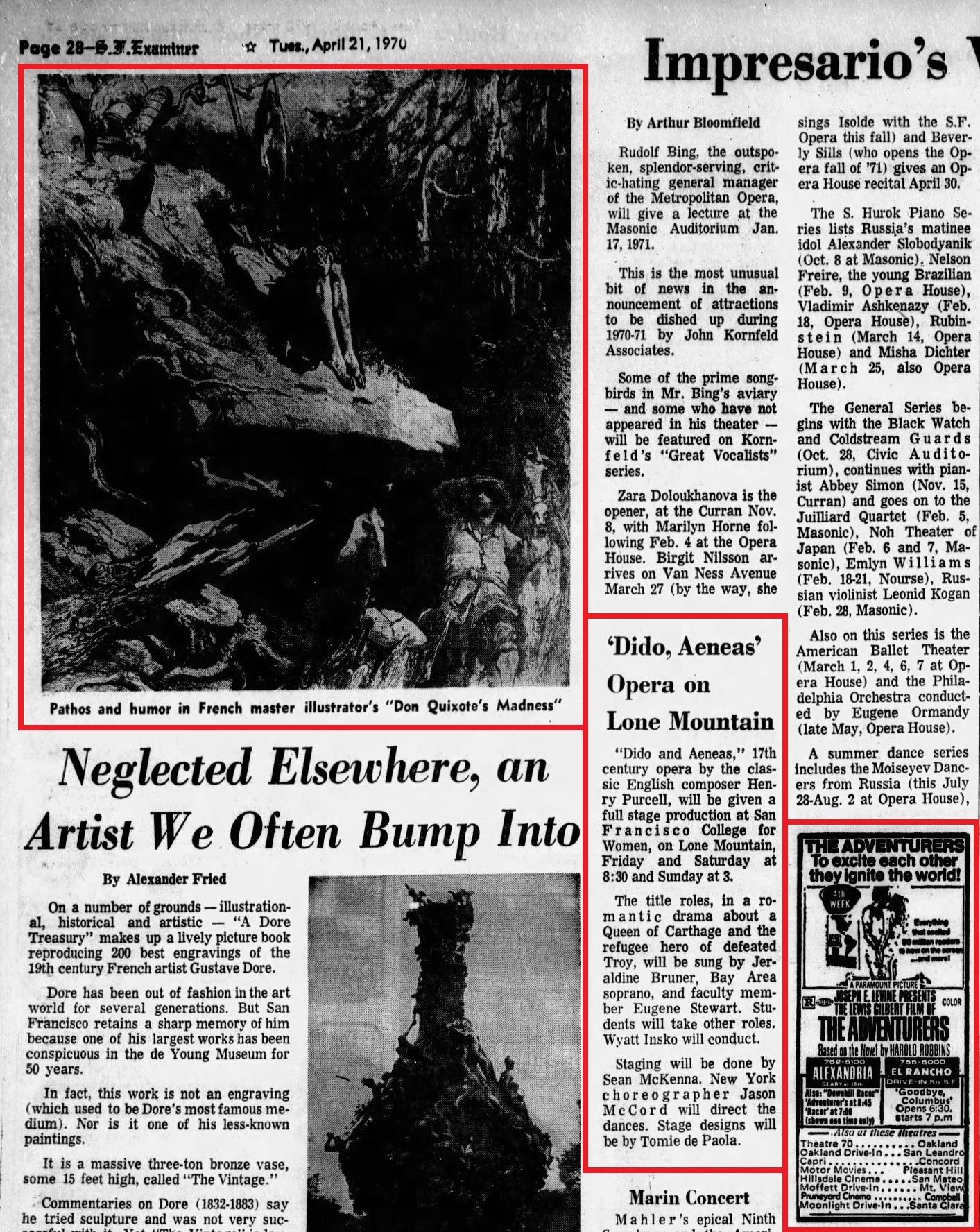 - S.F. Sunday Examiner and Chronicle, Datebook, 12-18 aprile 1970, pp. 1 e 7. โฉ๏ธ