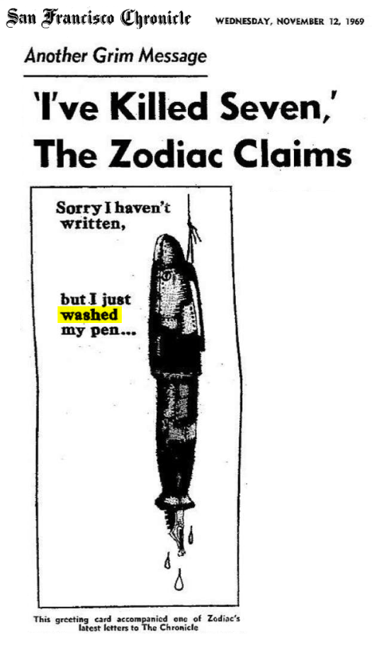- Donald Fouke, Memorandum su un sospetto Zodiac, 12 novembre 1969. โฉ๏ธ