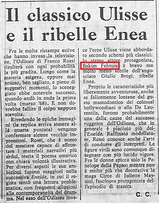 - C. C., “Il classico Ulisse e il ribelle Enea”, La Nazione, 18 luglio 1974, p. 9. โฉ๏ธ