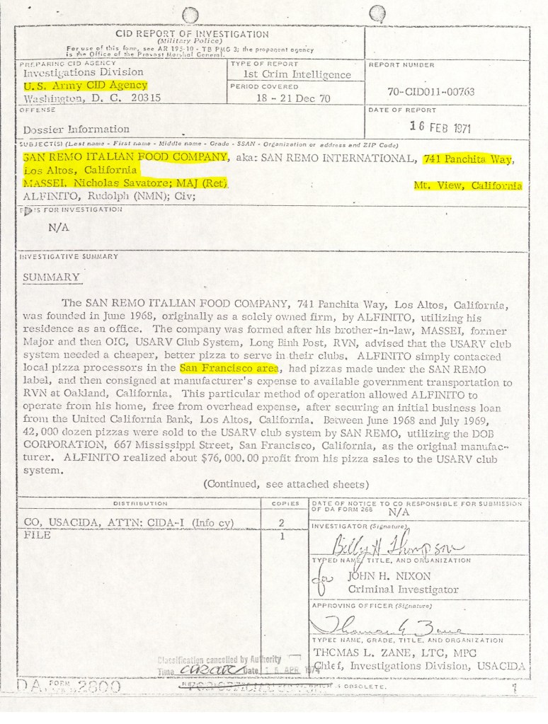 - CID Agency, Rapporto investigativo n. 70-CID011-00763, 16 febbraio 1971. โฉ๏ธ