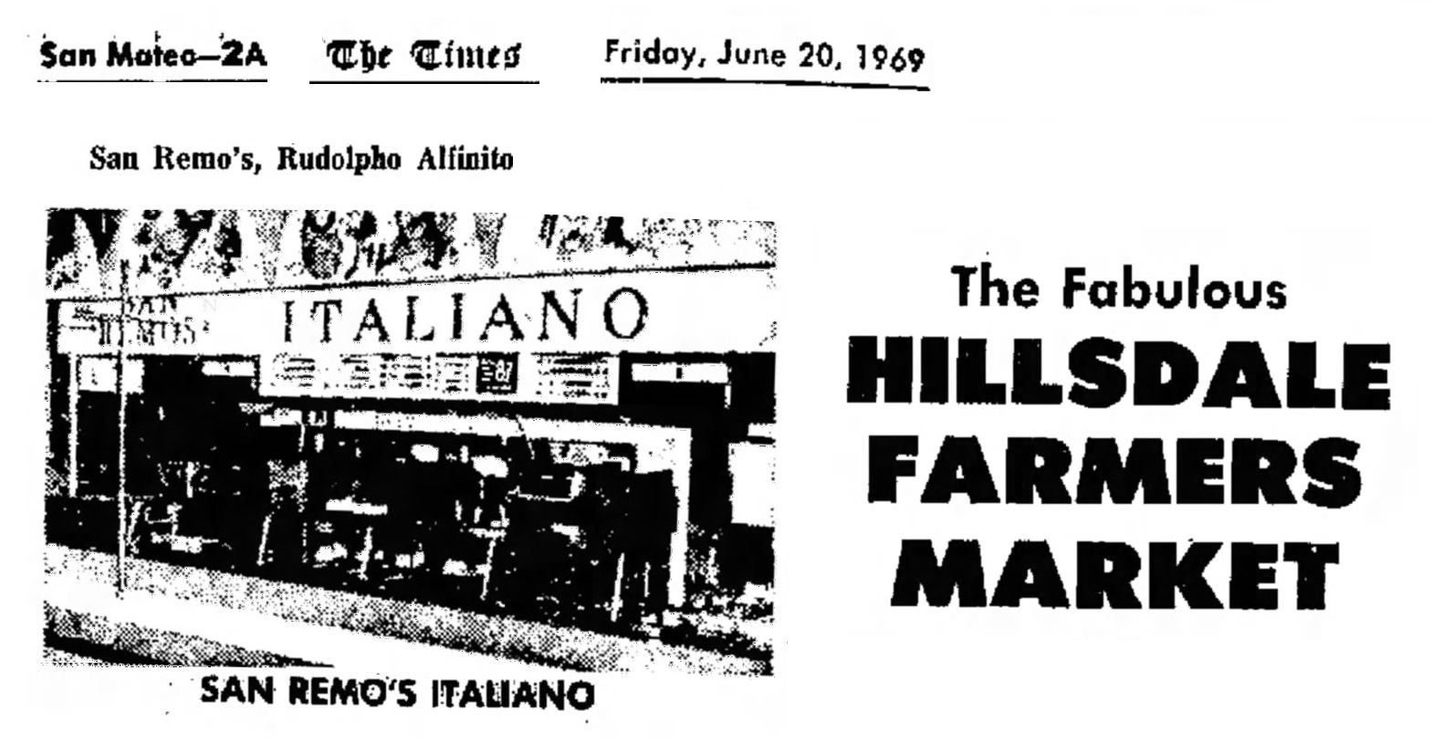 - Lloyd Johnson, “Farmer’s market is restaurant complex”, San Mateo Times, 20 luglio 1969, p. 2A. โฉ๏ธ