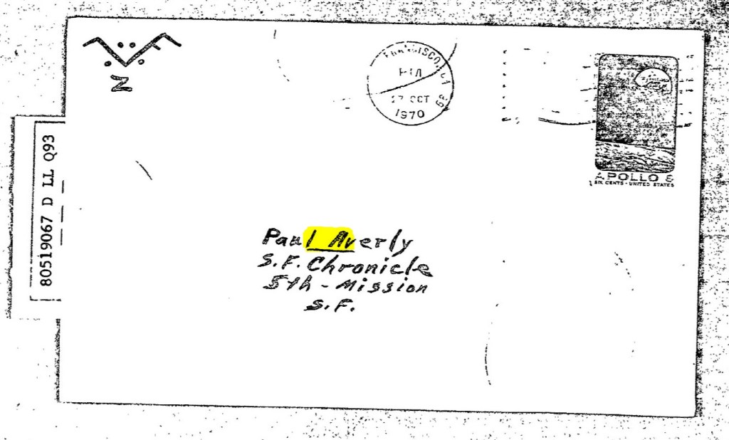 Alla fine di ottobre 1970, Zodiac spedisce una cartolina al cronista del Chronicle Paul Avery che sembra contenere un indovinello.