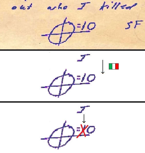 - Zodiac รจ in grado di costruire testi cifrati complessi come il 340, e potrebbe essere stato addestrato a farlo dai militari USA, secondo gli esperti dell’esercito (capitolo 2). Dovrebbe sapere che con un testo cifrato di 13 simboli si possono ottenere molti nomi utilizzando diversi cifrari ugualmente validi (รจ compatibile con un serial killer narcisista?);