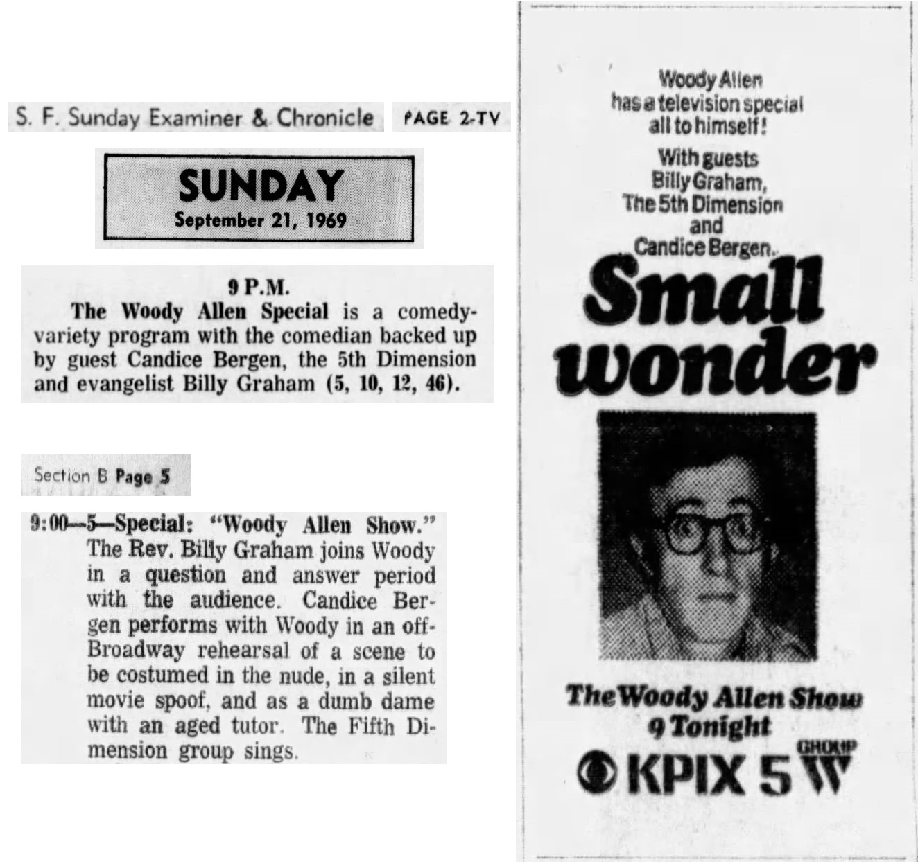 - “Woody Allen play open friday”, The Napa Register, 10 settembre 1969, p. 14A. โฉ๏ธ
