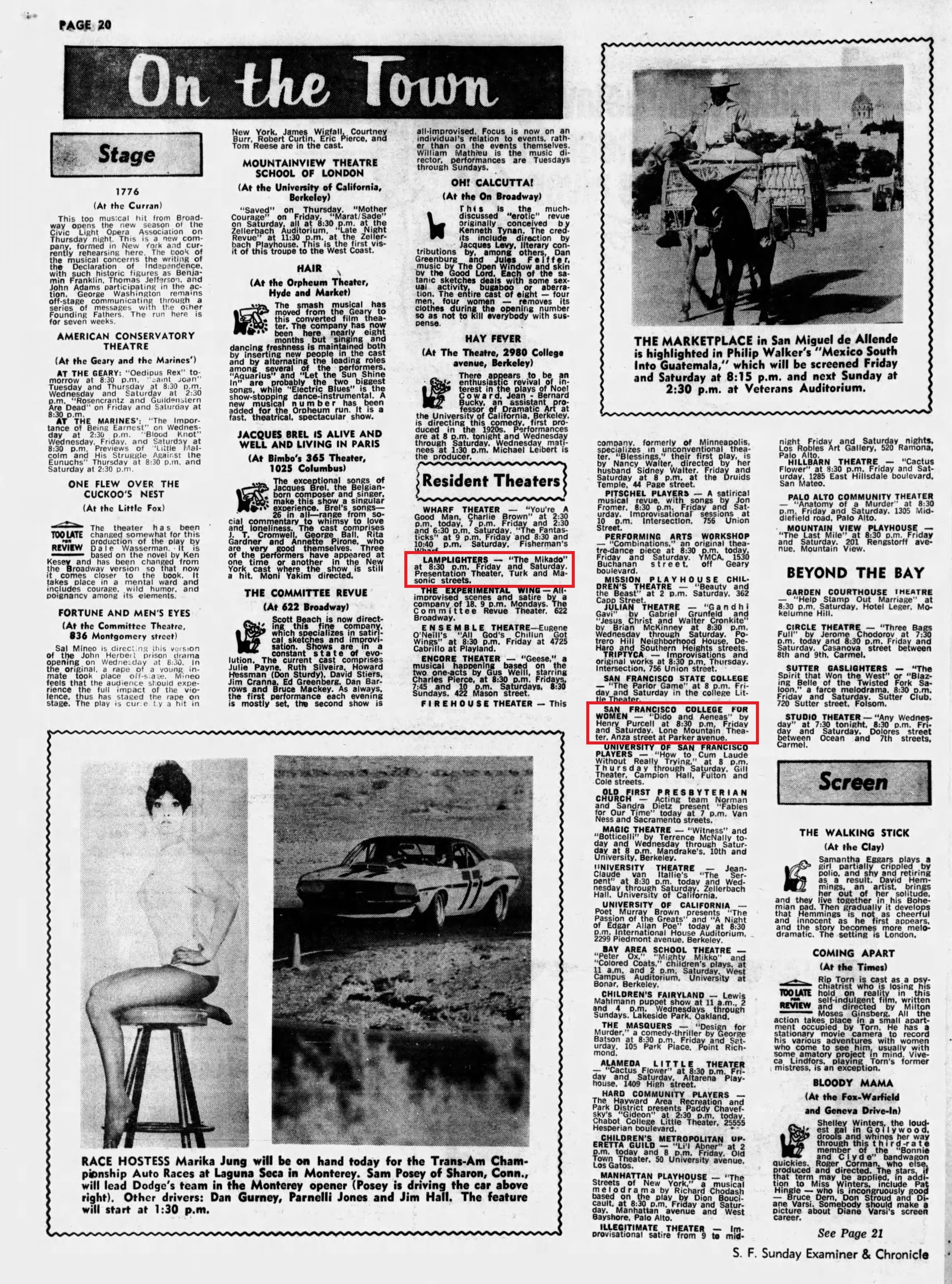 - S.F. Sunday Examiner and Chronicle, Datebook, 19-25 aprile 1970, p. 20. โฉ๏ธ