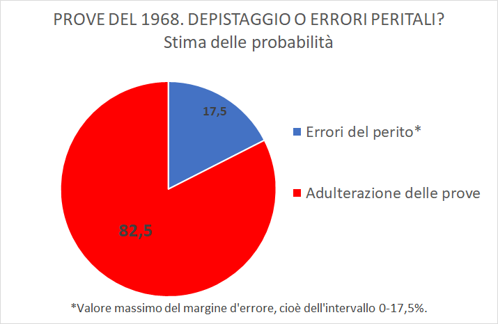 Sono state riscontrate contraddizioni fra le prove del delitto del 1968 e quelle ritrovate nel fascicolo. A partire da queste discrepanze รจ stato effettuato il calcolo delle probabilitร di un depistaggio, il cui valore situa a livelli alti, nell’intervallo 82,5 – 100%. Per sapere come รจ stata calcolato, bisogna scorrere la pagina fino al capitoletto “Probabilitร “.