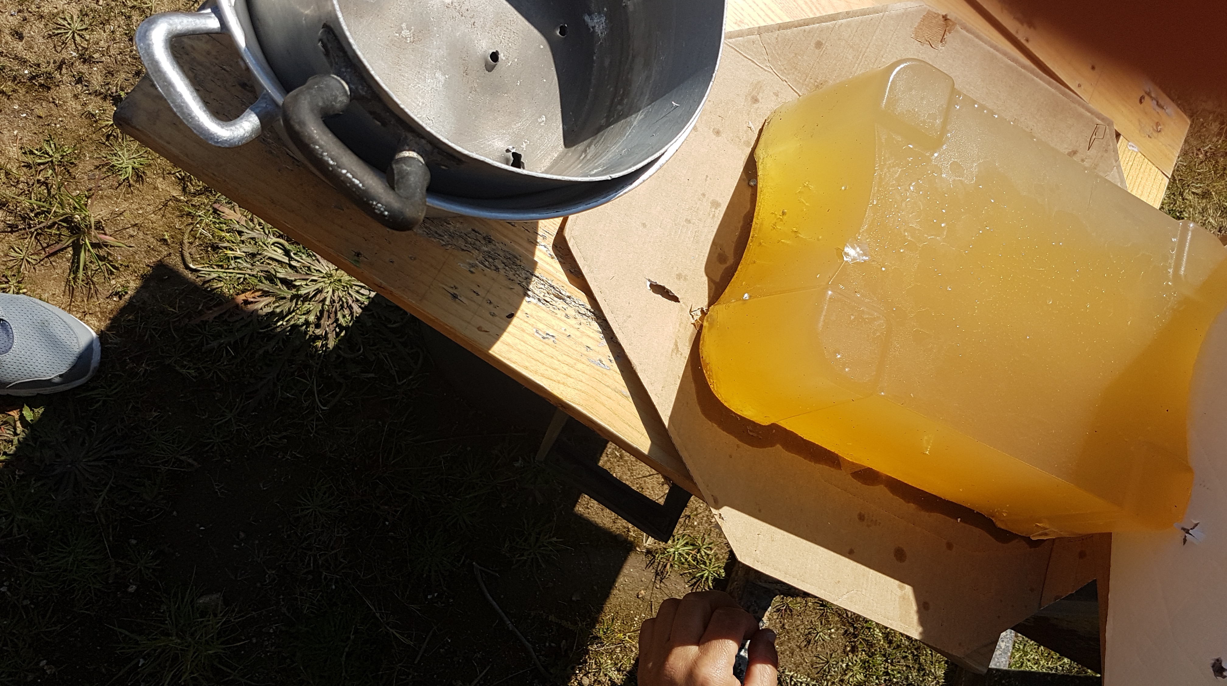 Continua a mescolare. Prima che raggiunga il bollore, spegne il fuoco e versa in una ciotola a forma di parallelepipido, con una lunghezza di circa 50 cm.