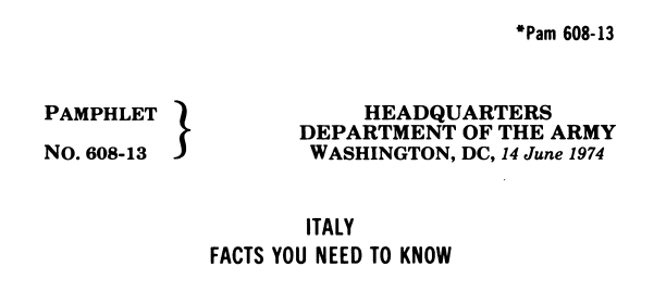 [1] Department of the Army, Italy, facts you need to know, GPO, giugno 1974, p. 28.