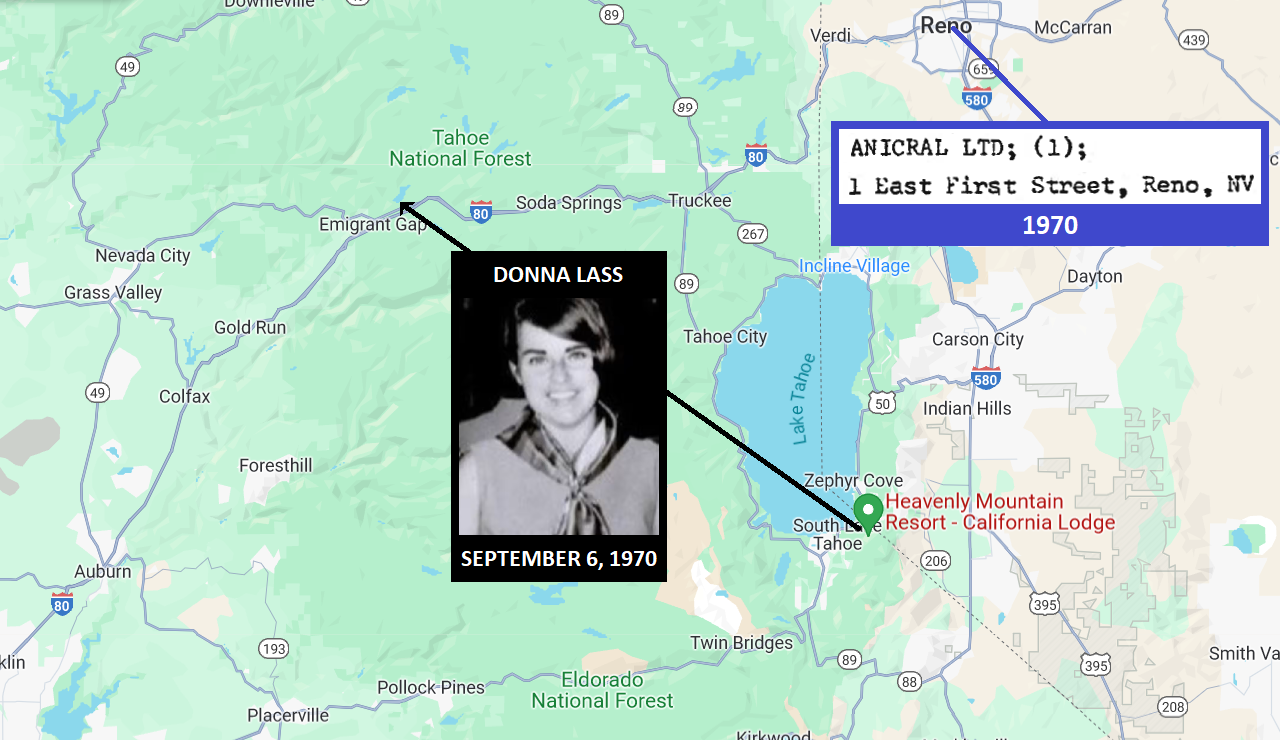 On July 28, 2017, after a few seconds of silence, Bevilacqua responds in the affirmative when I ask him if he was at Lake Thaoe in ’70. In this area, that year, a possible Zodiac victim, Donna Lass, was kidnapped.