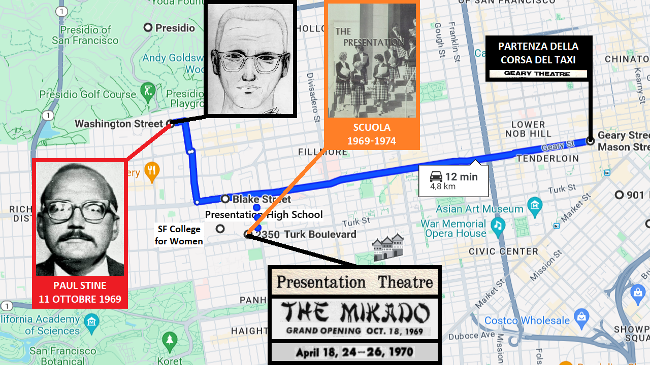 Dopo una pausa di quasi tre anni, ricontatta il San Francisco Chronicle, ma invece di firmarsi “Zodiac” con la croce celtica, cita un passaggio su un annegamento tratto dall’opera a cui il serial killer potrebbe avere assistito nel teatro delle scuole della consuocera di Bevilacqua, il “Mikado” .