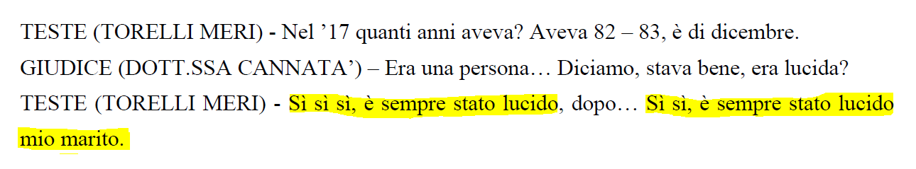 Nel 2018, Bevilacqua è anziano ma lucido (altro che, aggiungo). Lo sarà sempre fino alla morte, ricorderà la moglie Meri Torelli nell’udienza del mio processo per diffamazione del 12 ottobre 2023 (qui la trascrizione), confermando la versione più recente del marito sulla sua conoscenza di Pacciani.