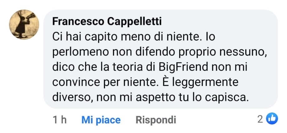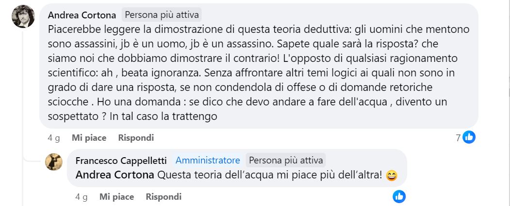 Anche Cappelletti, però, come la maggior parte degli utenti del suo gruppo, ha osteggiato dal principio la mia testimonianza con modi, per così dire, poco “imparziali”.
