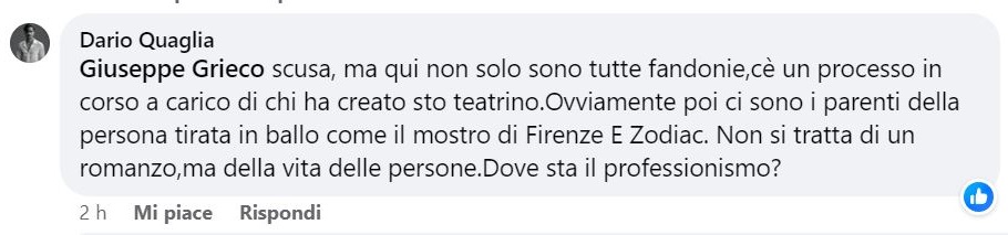 In ogni caso, la comunità di appassionati si riunisce soprattutto sul gruppo Facebook “Il mostro di Firenze” per discutere delle proprie tesi.