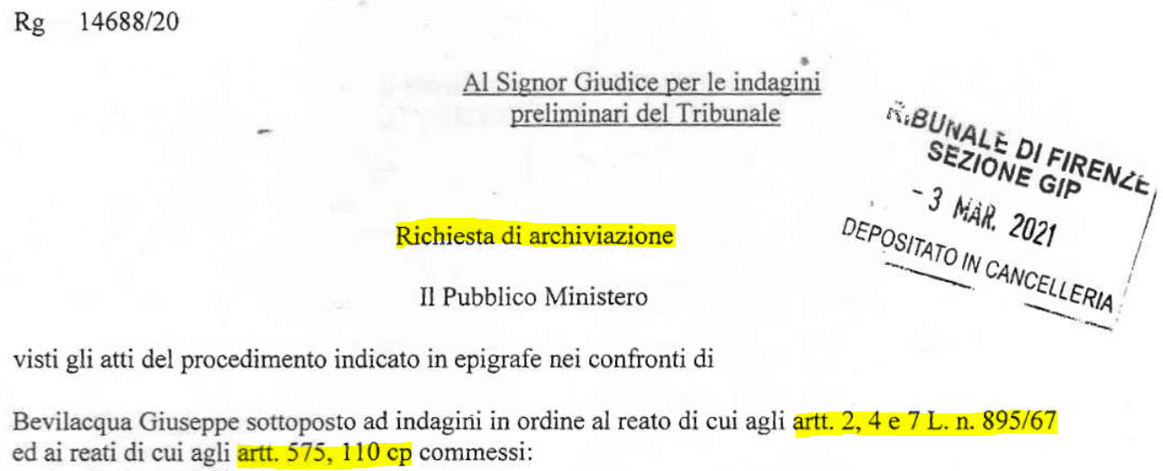 La cronologia degli atti si può verificare a questo link dove sono consultabili i principali documenti dell’indagine su Bevilacqua della Procura di Firenze archiviata nel 2021.