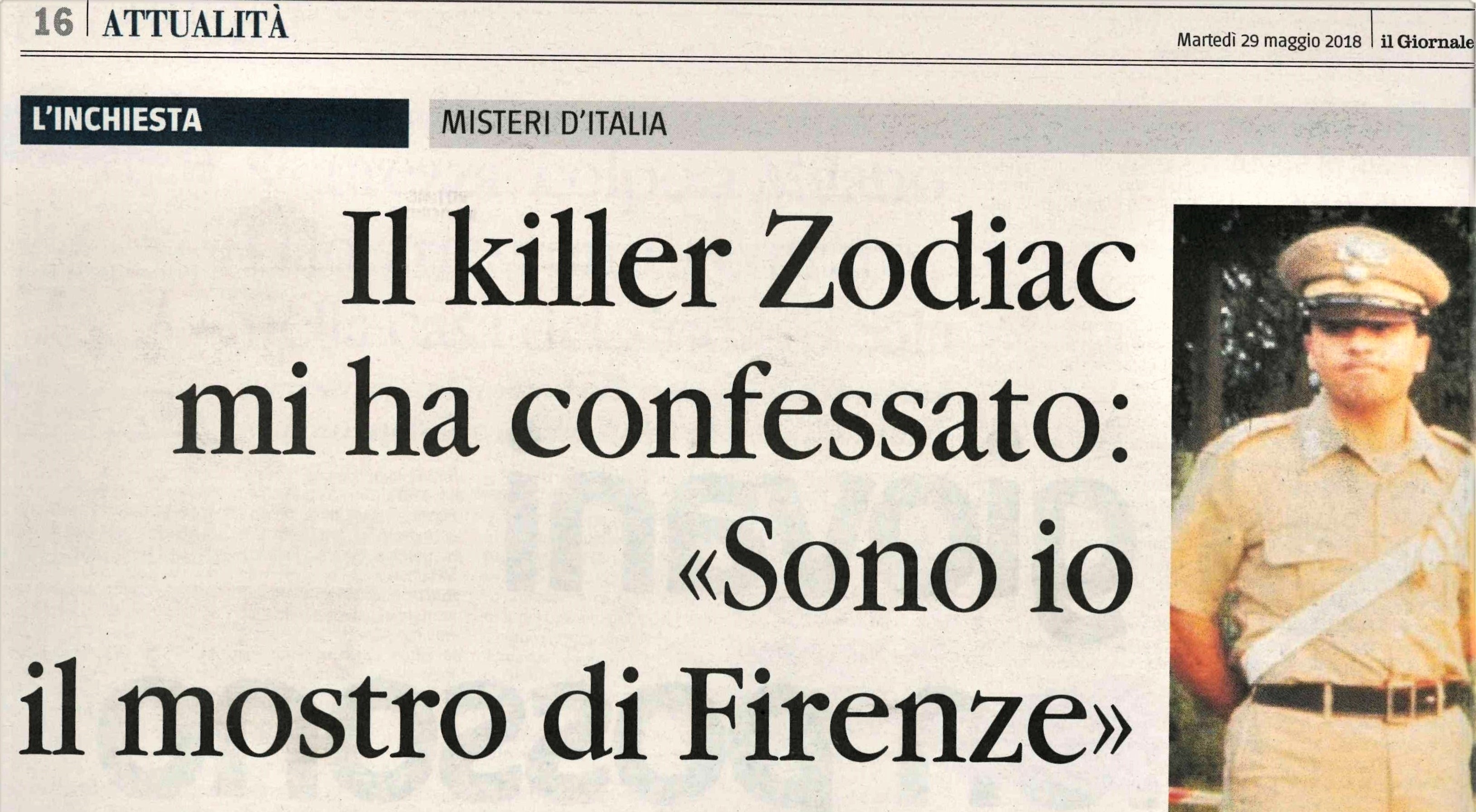 Il 1 marzo 2018 denuncio il testimone italo-americano del processo Pacciani sui delitti del Mostro per un’ammissione di colpa relativa ai crimini del Mostro e Zodiac.