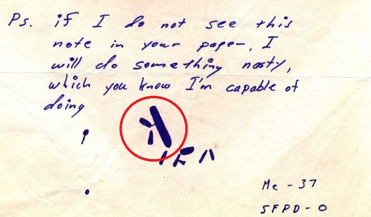 On January 29, 1974, the San Francisco Chronicle receives a letter from an anonymous writer. He did not sign with his nickname and the crossed circle by which he is known, but there was no need. His style has not changed a bit.