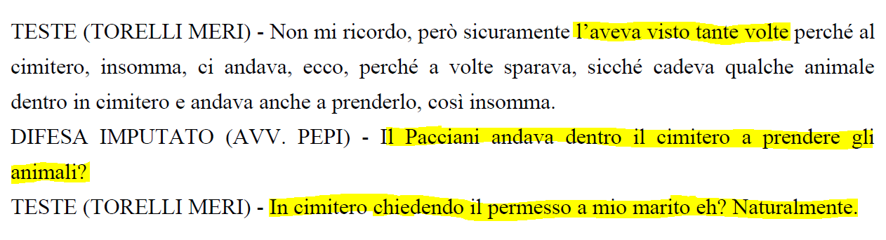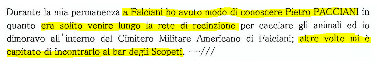 "Bevilacqua mi disse che conosceva bene Pietro Pacciani, e che lo aveva incontrato piรน volte nel bosco dietro il cimitero dei Falciani."