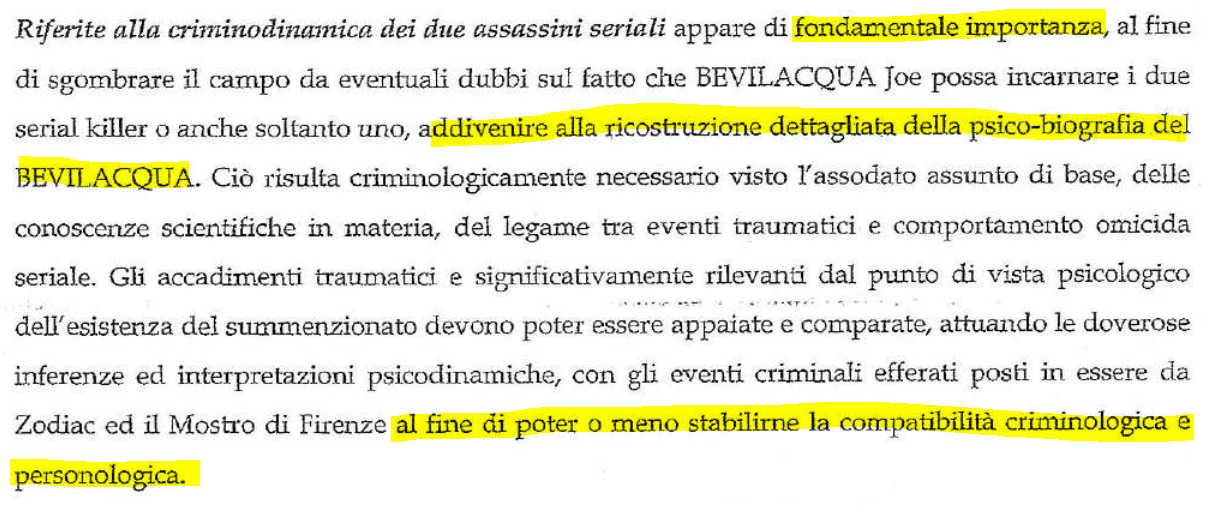 Tradotto: serve una verifica approfondita su Bevilacqua per capire se puรฒ essere uno o entrambi i serial killer.