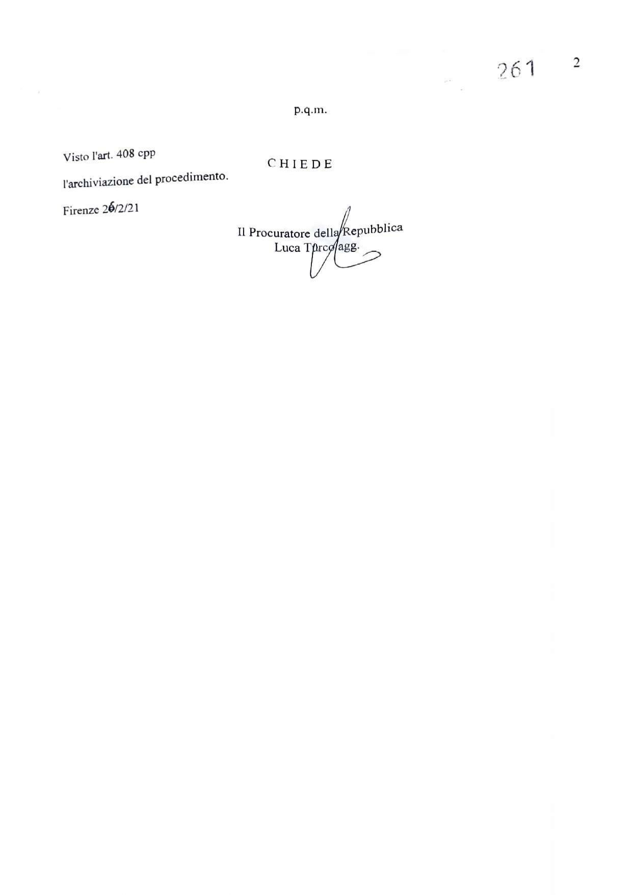 Tre anni dopo, il caso รจ stato archiviato senza avvertire i parenti delle vittime, violando la legge. E questo non รจ che il corollario delle gravi “criticitร ” che ho segnalato al nuovo procuratore capo di Firenze Filippo Spiezia in una memoria del marzo 2024.