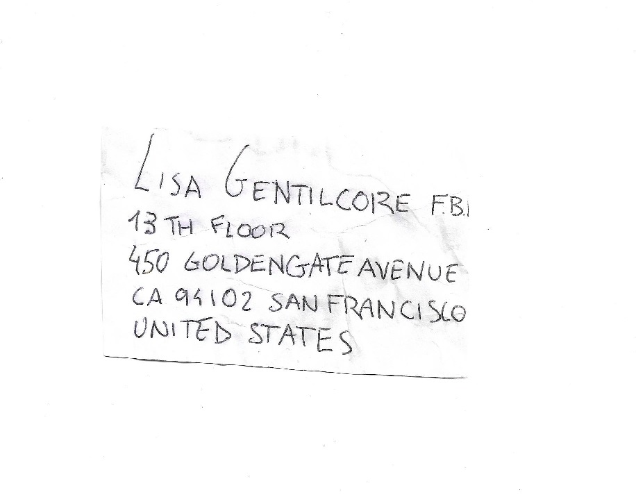 Nell’agosto 2017, ho inviato in una busta anonima una copertina del libro “Zodiac” di Robert Graysmith con le impronte digitali di Bevilacqua a un’agente dell’FBI. Nella busta non c’era un messaggio. Pensavo che in caso di comunicazioni di questo tipo, fosse protocollo dell’FBI rilevare automaticamente le impronte. Se ci fosse stato qualcosa su Bevilacqua, sarebbe saltato fuori dall’eventuale controllo.