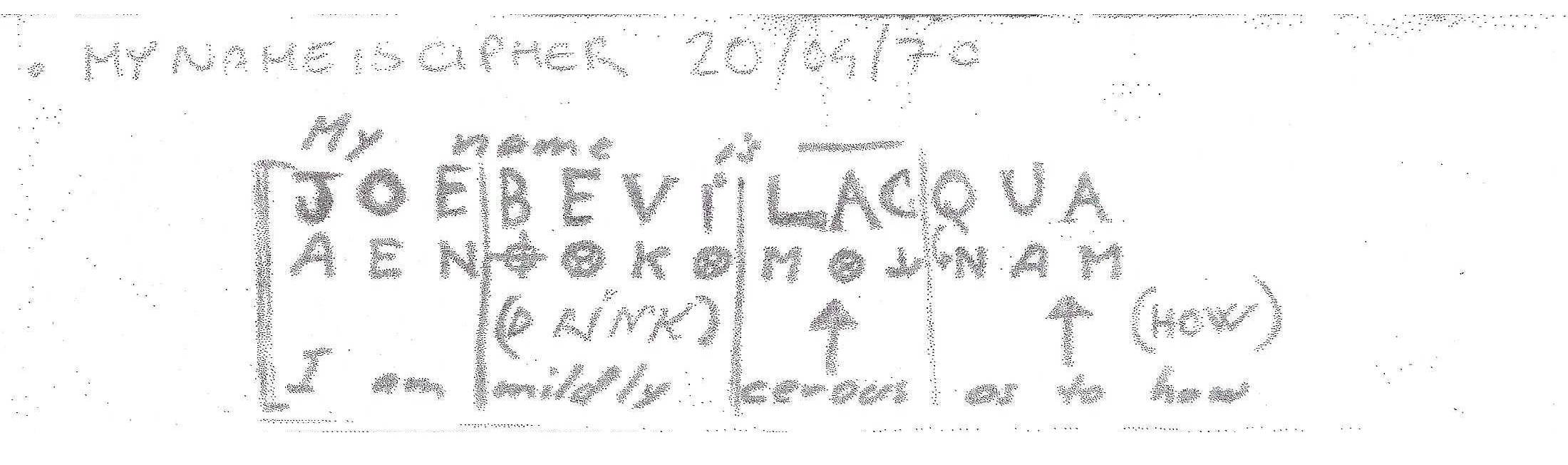 Ho inserito informazioni parziali in alcuni commenti su un forum sul Mostro, condividendo una decifrazione stilizzata del nome di Zodiac (già inviata alle forze dell’ordine – prossima immagine) sul blog di un ricercatore, Martin Rush, nel dicembre 2017.