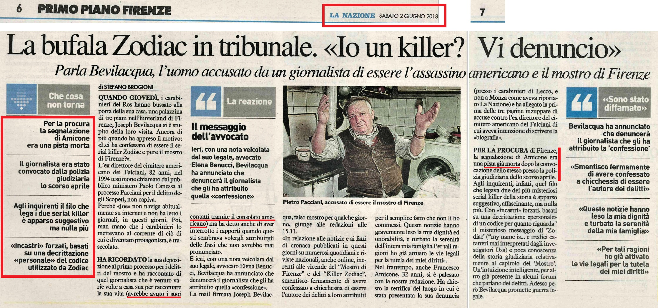 Credo che il cronista giudiziario della Nazione si riferisca ai commenti su Bevilacqua scritti da me in anonimato sul forum imostridifirenze usando vari pseudonimi nel 2017, quando ho anche segnalato la decifrazione del nome di Zodiac sul blog del ricercatore Martin Rush.