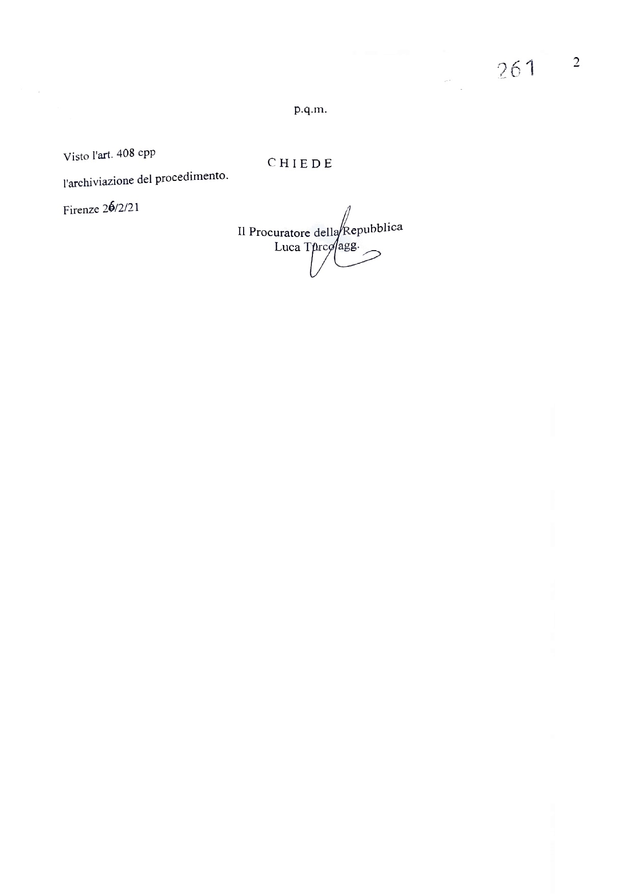It was submitted to the Monza Carabinieri and then to the Florence DA’s Office. This is the second version of April 16, 2018.