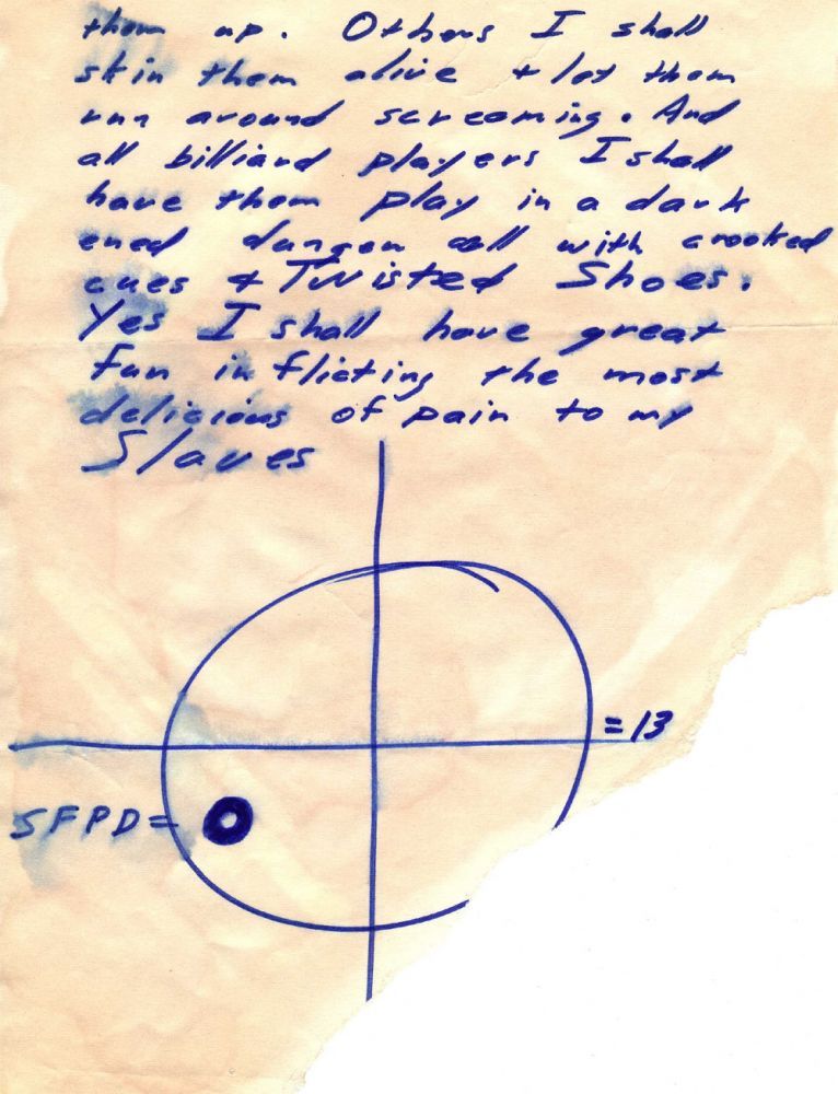 Alcune vittime le legherò sopra una tana di formiche e le guarderò gridare & contorcersi e attorcigliarsi. Ad altre infilerò aghi di pino sotto le unghie & poi le brucerò.