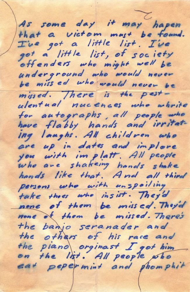 “Piccola lista” copiata e rimaneggiata dall’operetta “Il Mikado” di Gilbert e Sullivan, Atto I, Scena V