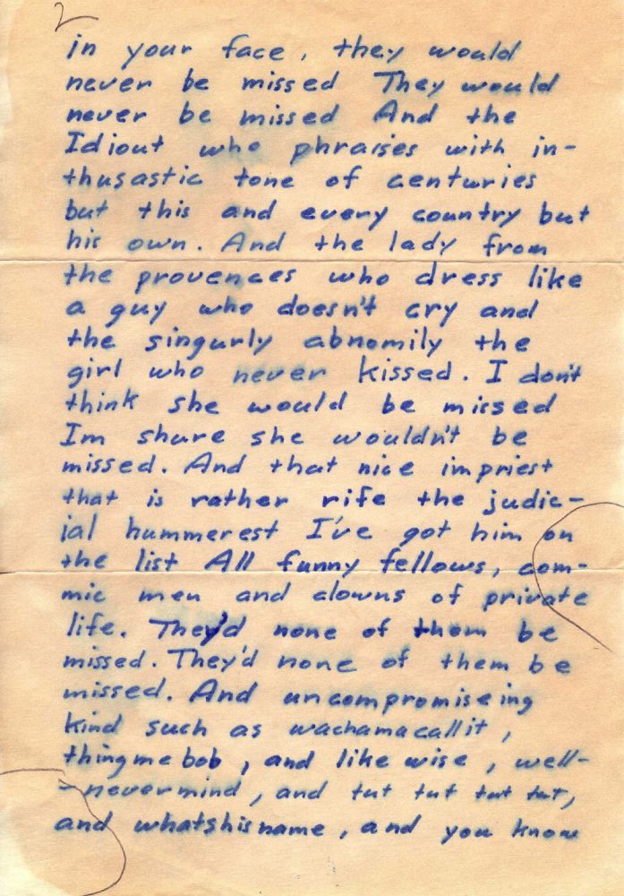 E farò giocare tutti giocatori di biliardo in una cella buia sotterranea con stecche rotte & scarpe allacciate fra loro.